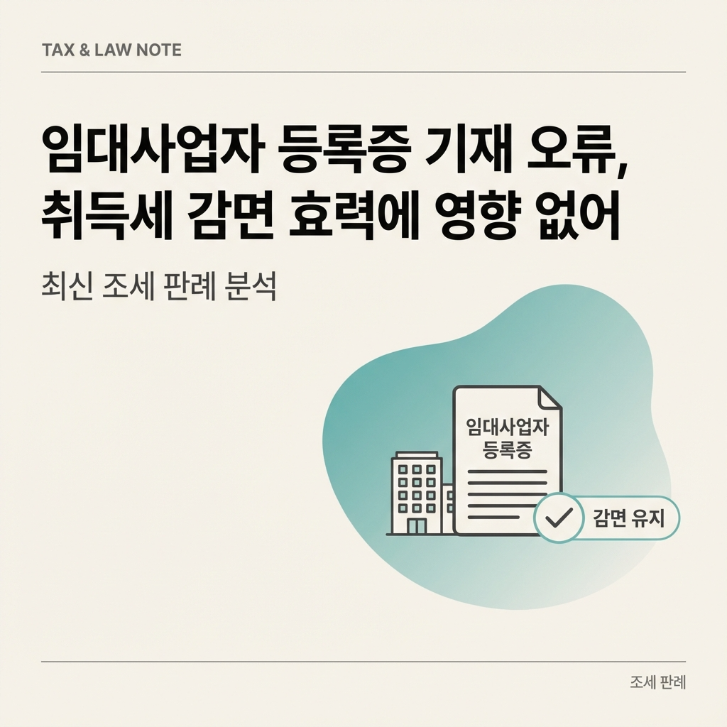 임대사업자 등록증 기재 오류, 취득세 감면 효력에 영향 없어