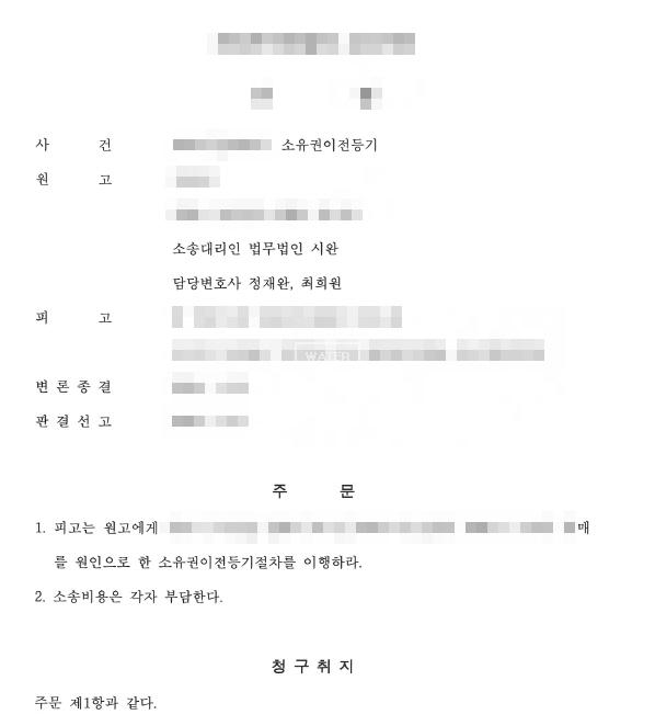 법원은 원고의 주장을 모두 받아들여, * 농지 매매계약은 유효하게 존속하고 있고 * 매매대금 지급 사실이 인정되며 * 매도인의 계속 경작은 매수인을 위한 점유매개관계에 해당하므로 * 소유권이전등기청구권의 소멸시효는 완성되지 않았다고 판단하였습니다. 그 결과, 피고는 원고에게 매매를 원인으로 한 소유권이전등기절차를 이행하라는 전부 인용 판결을 선고하였습니다.